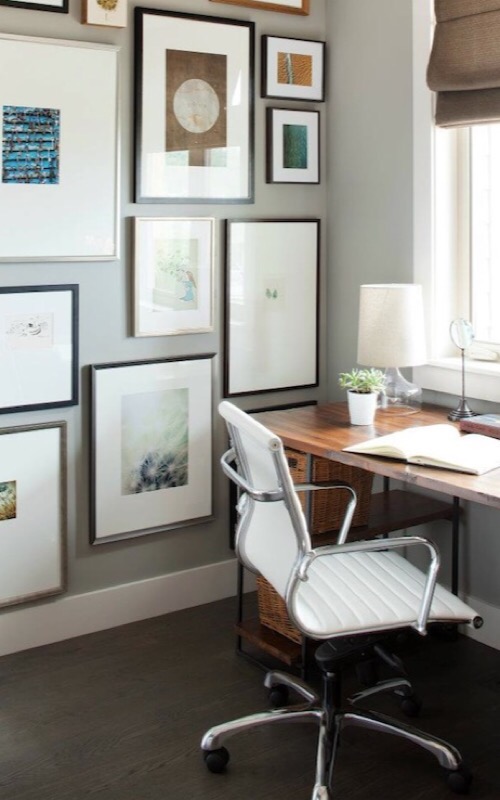 Let’s start: bring together all of the art or pictures you want to hang. Remember that the frames (and if needed, the mats) are very important. We will work on ideas beside the typical symmetric arrangement.