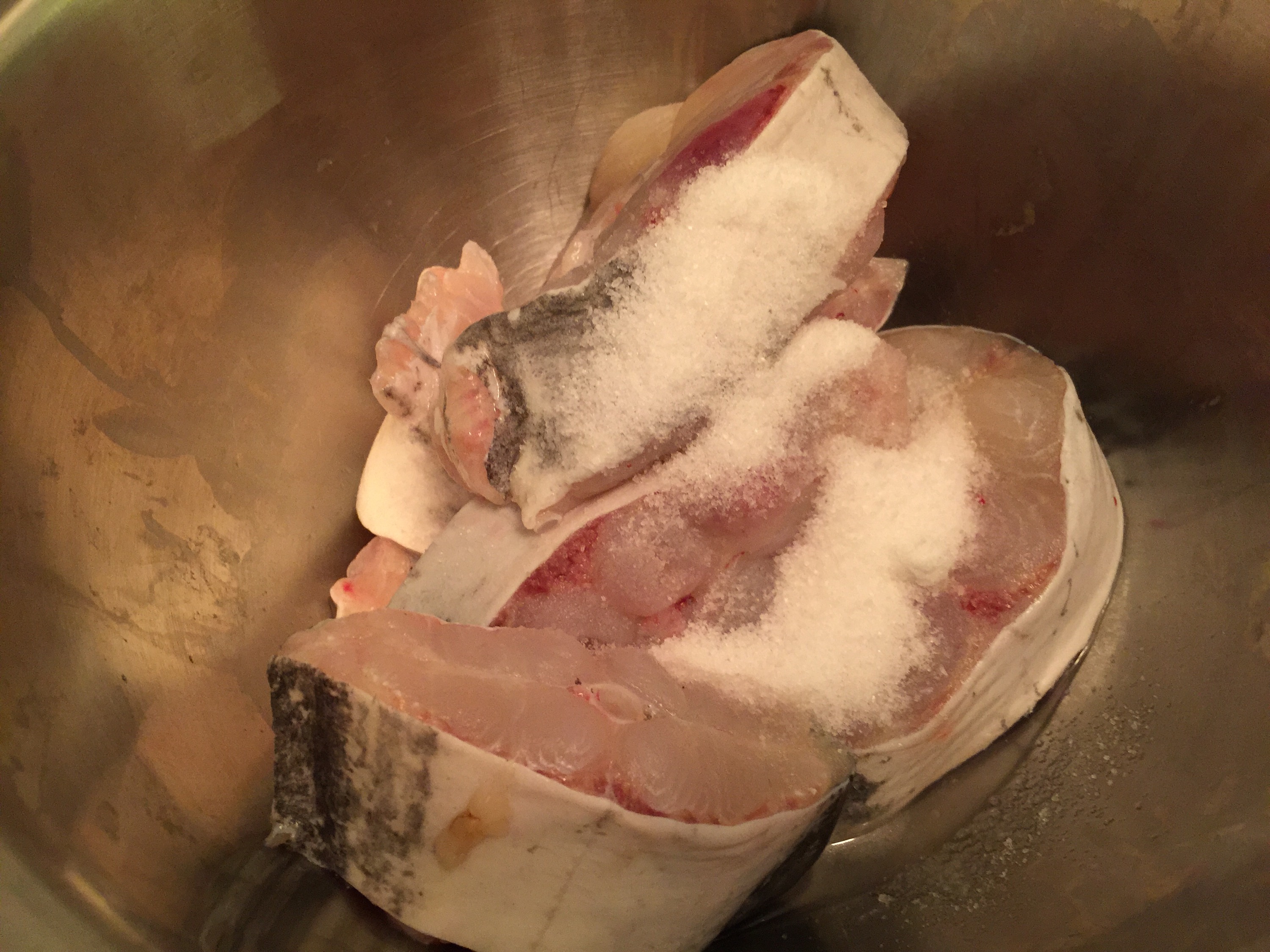 Once in a while, shake the pot so the fish does not stick to the bottom of the pot and break apart.