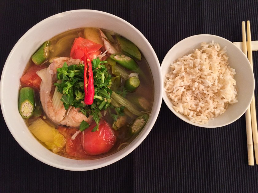 In last week’s Eat post, we made ca kho to or catfish braised in a clay pot. This week we will explore a companion dish called canh chua ca. This is a wonderful complex, yet simple soup. Vietnamese soup is a meal in itself and is usually eaten with rice and shared family style. This soup is traditionally made with the head and tail of a catfish or whatever fish that the family is eating that day. You can substitute the protein with shrimp, salmon or any other type of fish or seafood that you would like to eat.
