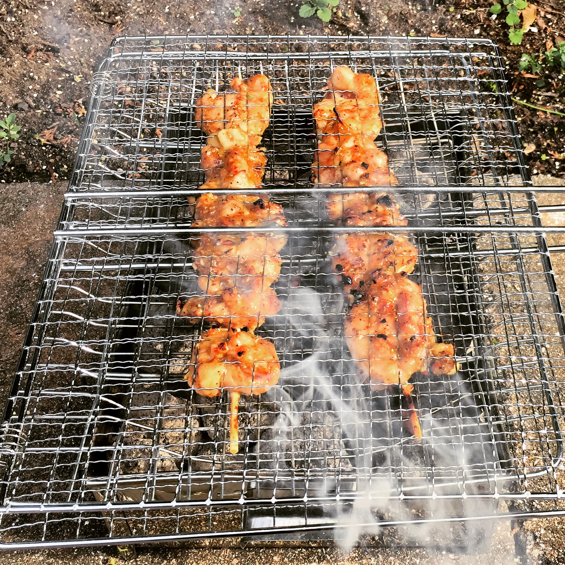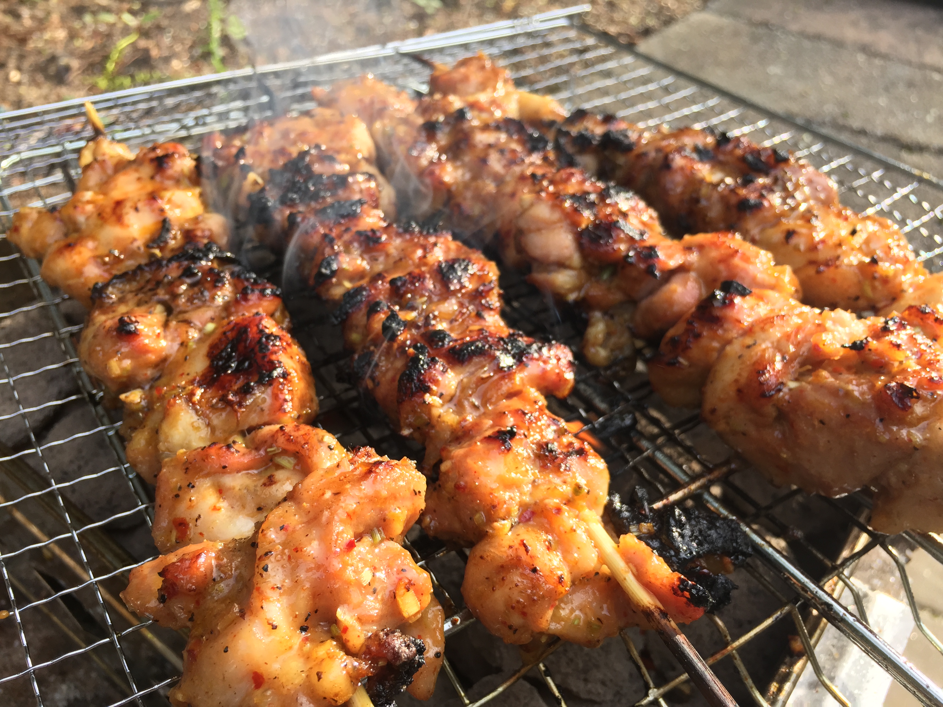 Place the skewers on the grill with low to medium heat. Turn the skewers when the meat has turned golden from the caramelized marinade.