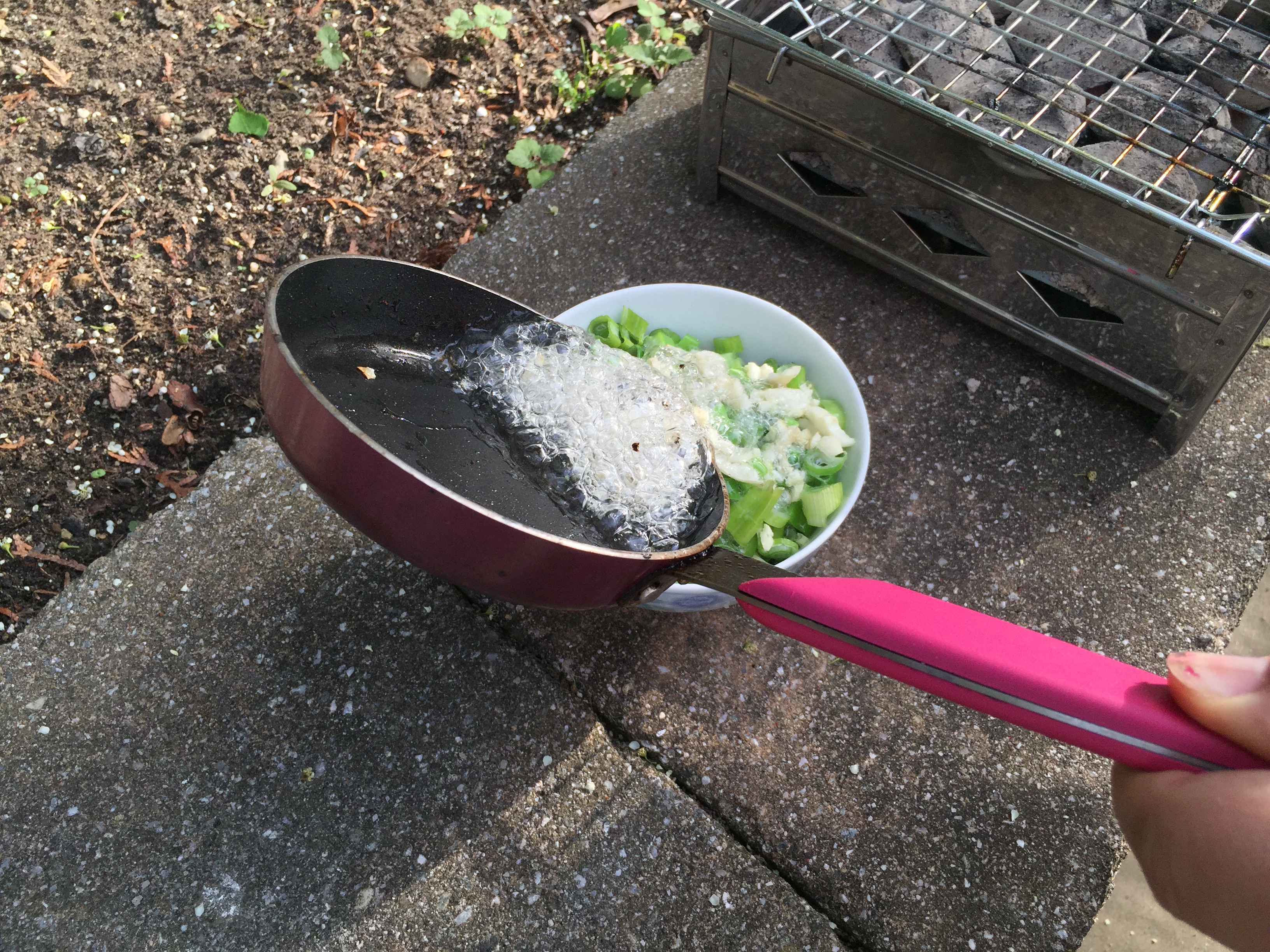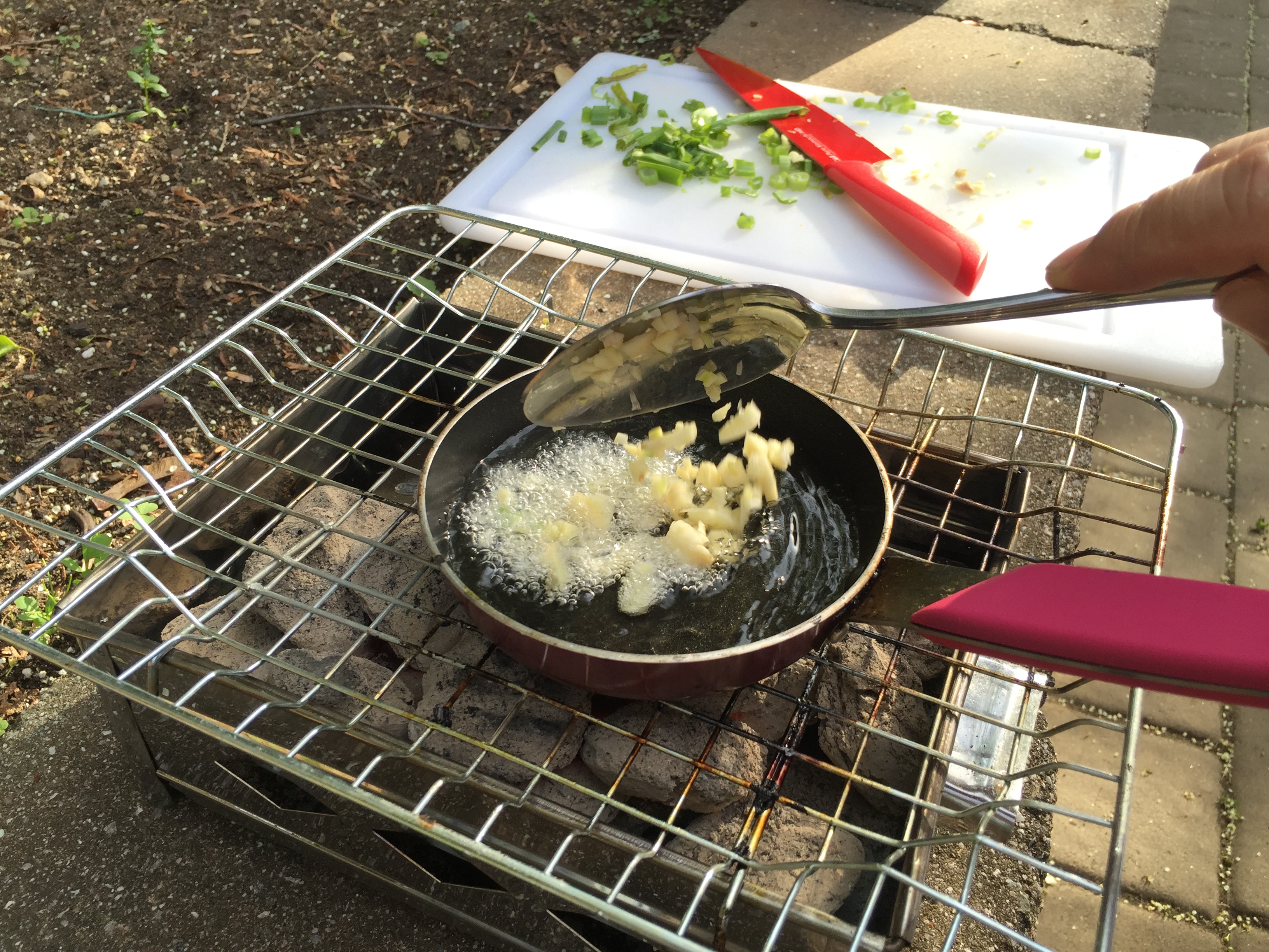 Put in the minced garlic. Take it off the heat immediately afterward so the garlic do not burn.