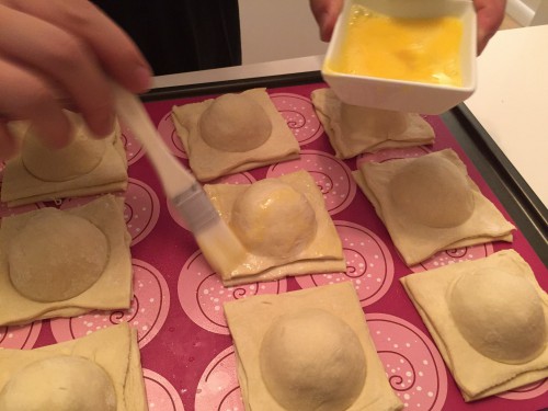 Beat 1 egg and lightly brush the egg wash over the top of the pastry.