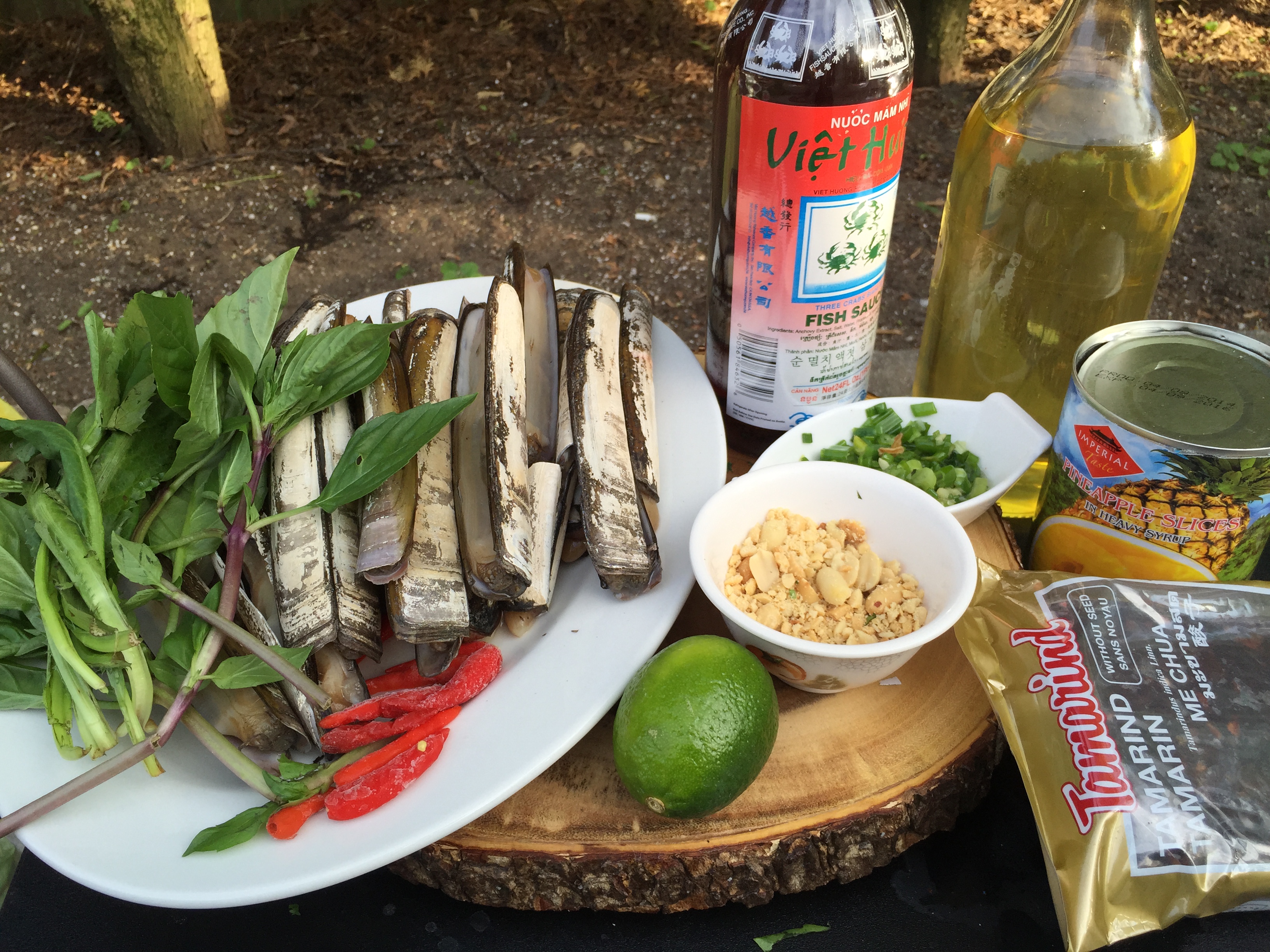 Another fantastic dish that takes me back to the beach is razor clams sauteed in tamarind sauce. This dish is sweet, sour and just finger licking good. We used razor clams for this dish but you can use any large shellfish. The trick is to get a type of shellfish where the shell will hold the sauce. For every bite, you get both the sauce and the meat. You first saw this dish in our Weekend Unexplored: Phu Quoc’s post. Today we will recreate that dish for you.
