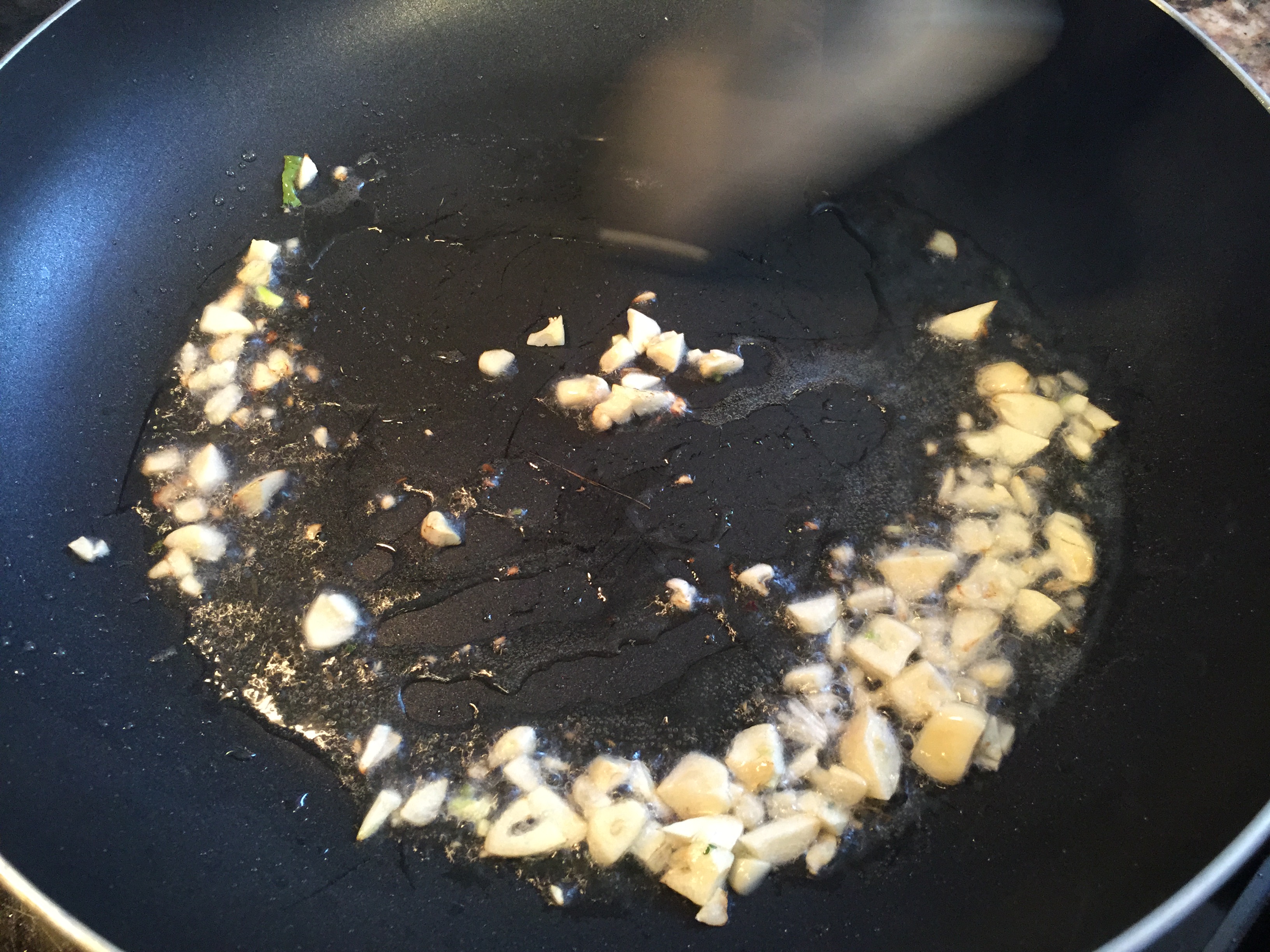 Add garlic to the pan until they become golden brown. Be careful not to burn the garlic or they will taste bitter.