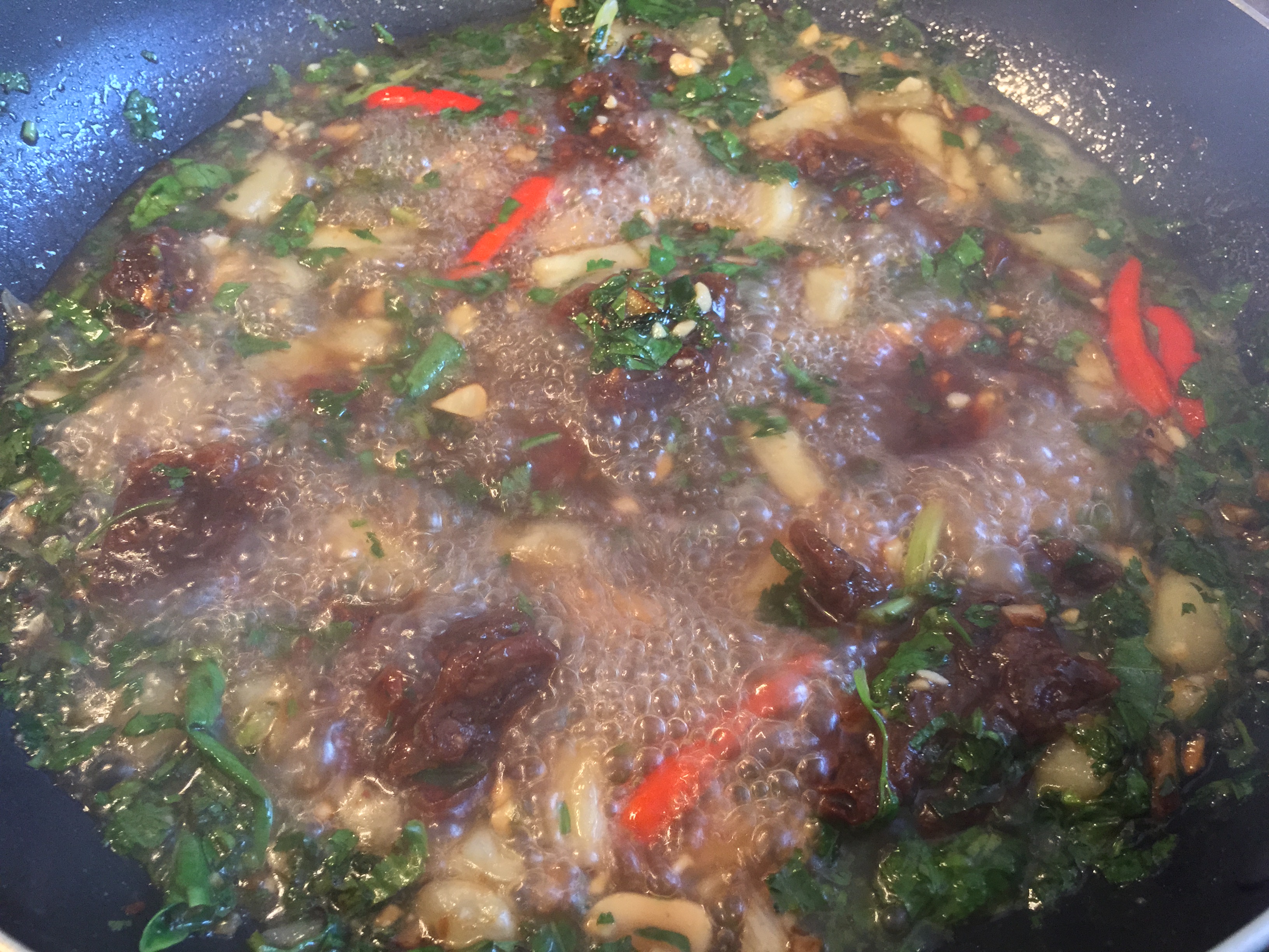 Add the clams and incorporate them into the sauce for 5 minutes.