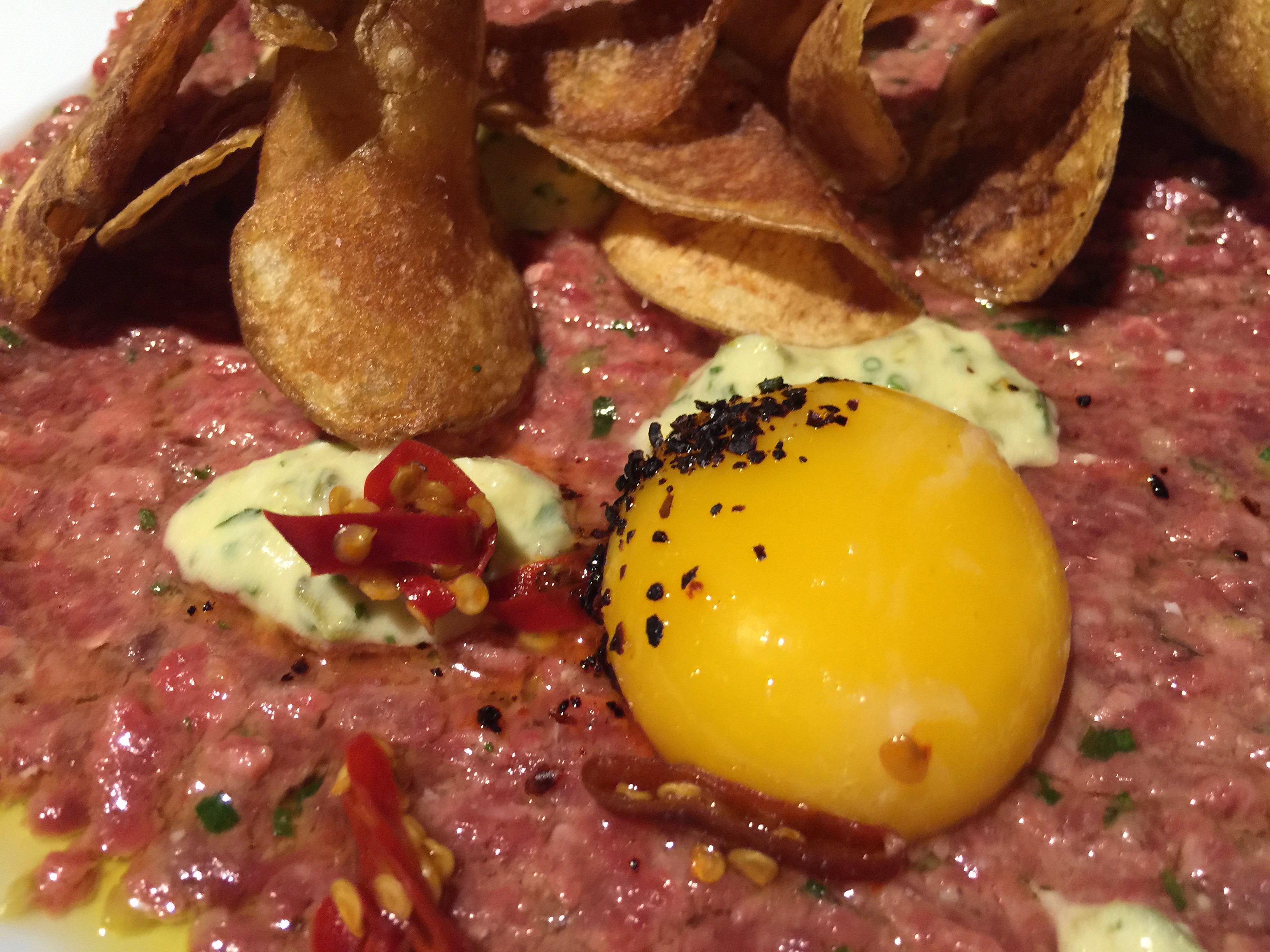 Dish 3: Beef Confit, Egg Yolk, Gribiche, Stack of Chips $15