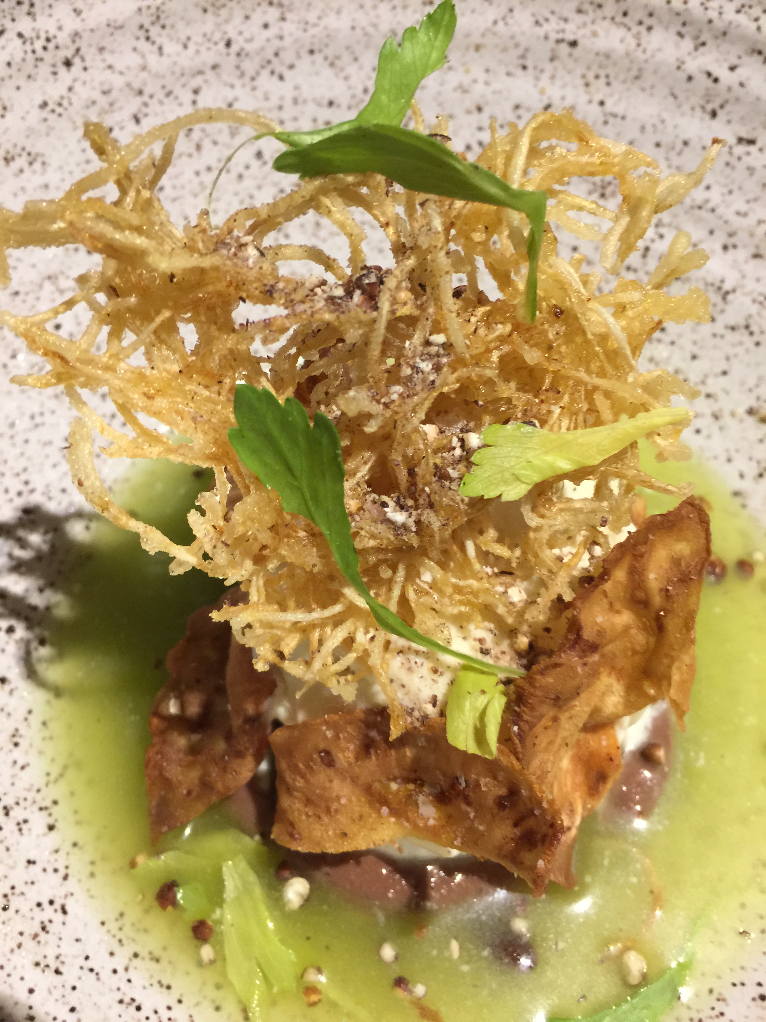 Who thought celery was the focus of this dessert. The dish had a nice crunch and the slightly saltiness of the celery complemented the sweetness of the ice cream. The presentation was delightful and we happily dug in.