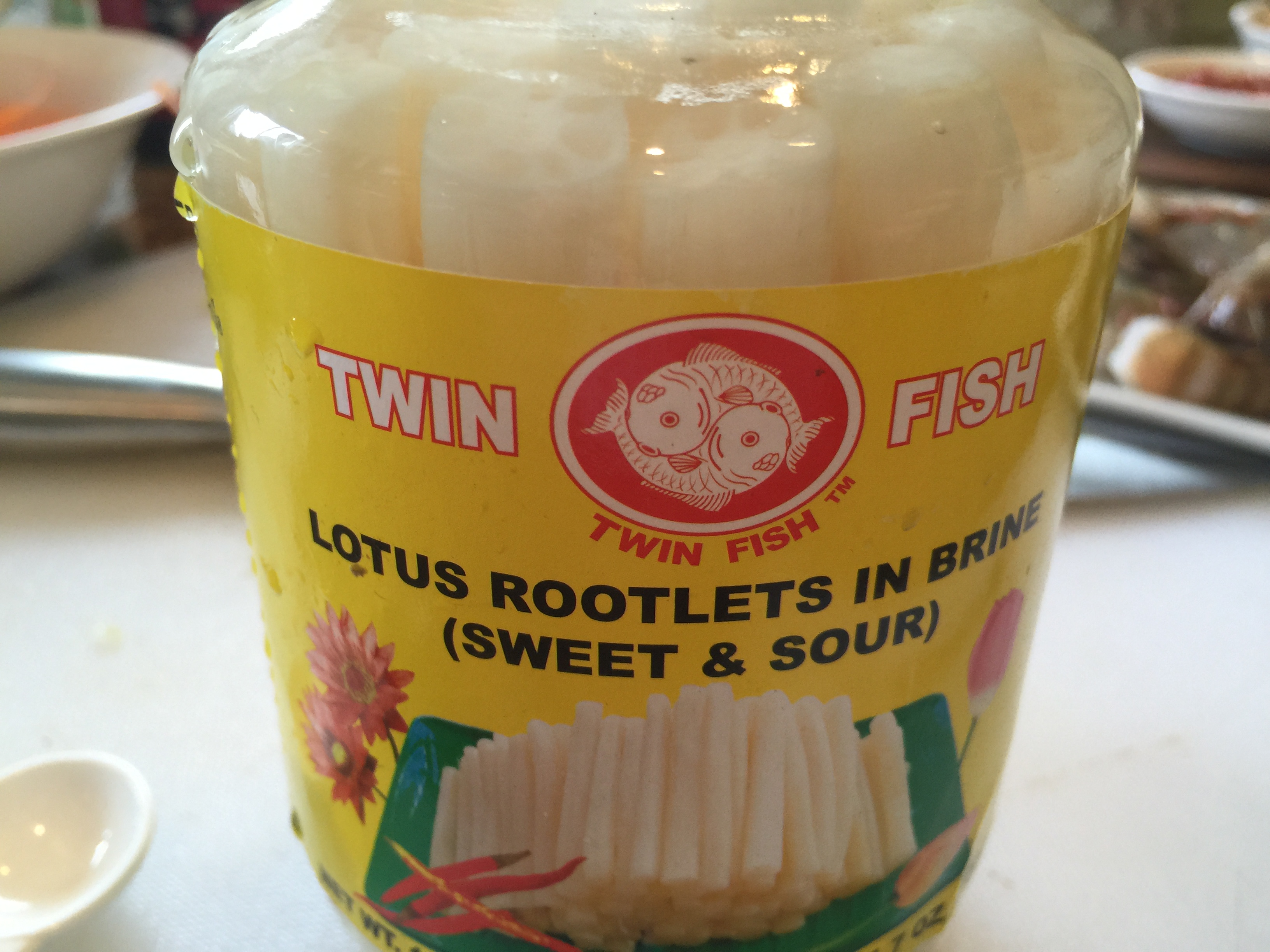 Remove the lotus roots from the container and rinse thoroughly to get rid of any brine. Cut each lotus root into quarters (lengthwise) and then again in half. Soak the lotus roots in another bowl of ice water. This will continue to remove any remaining brine and to keep them fresh.