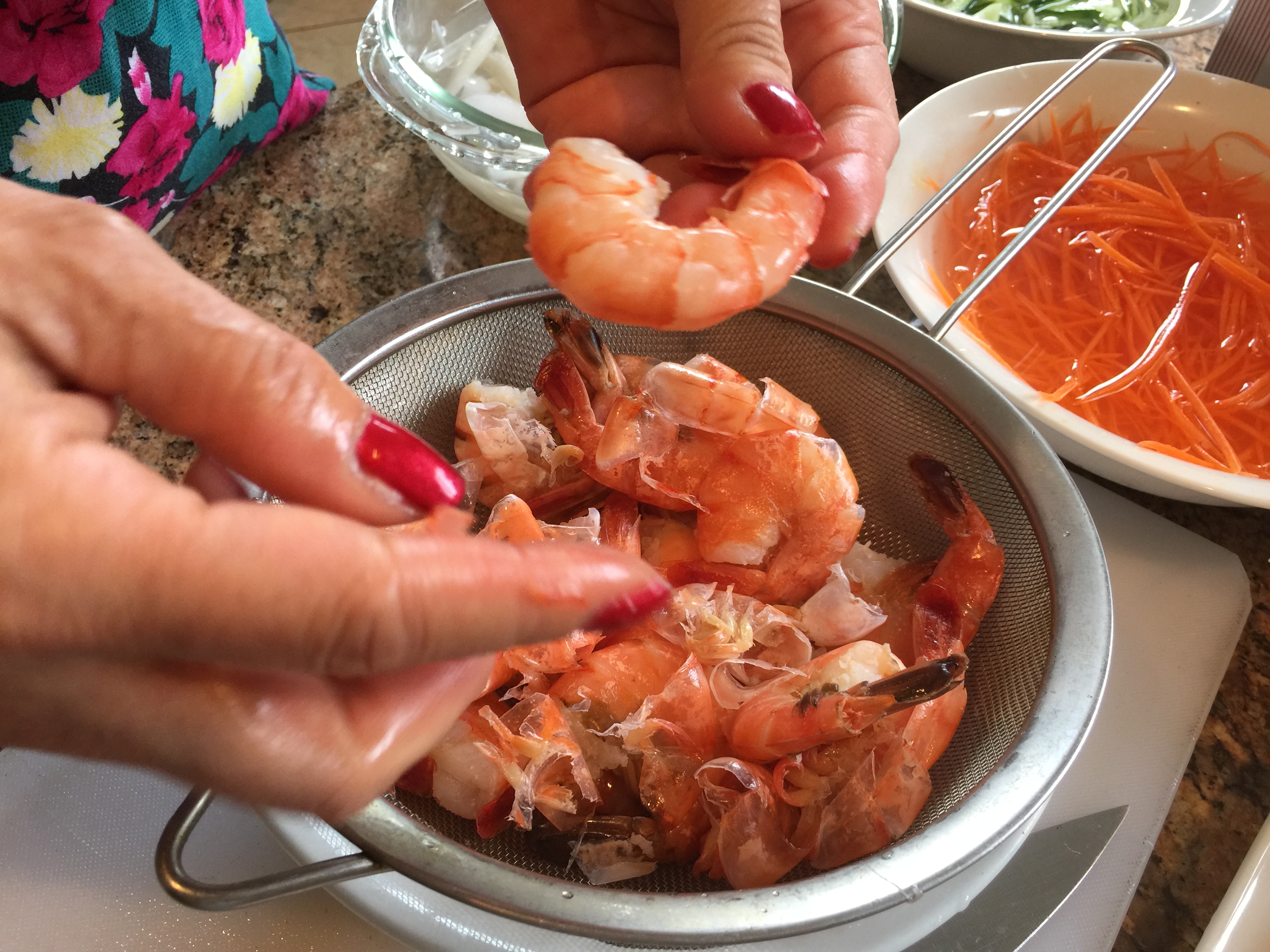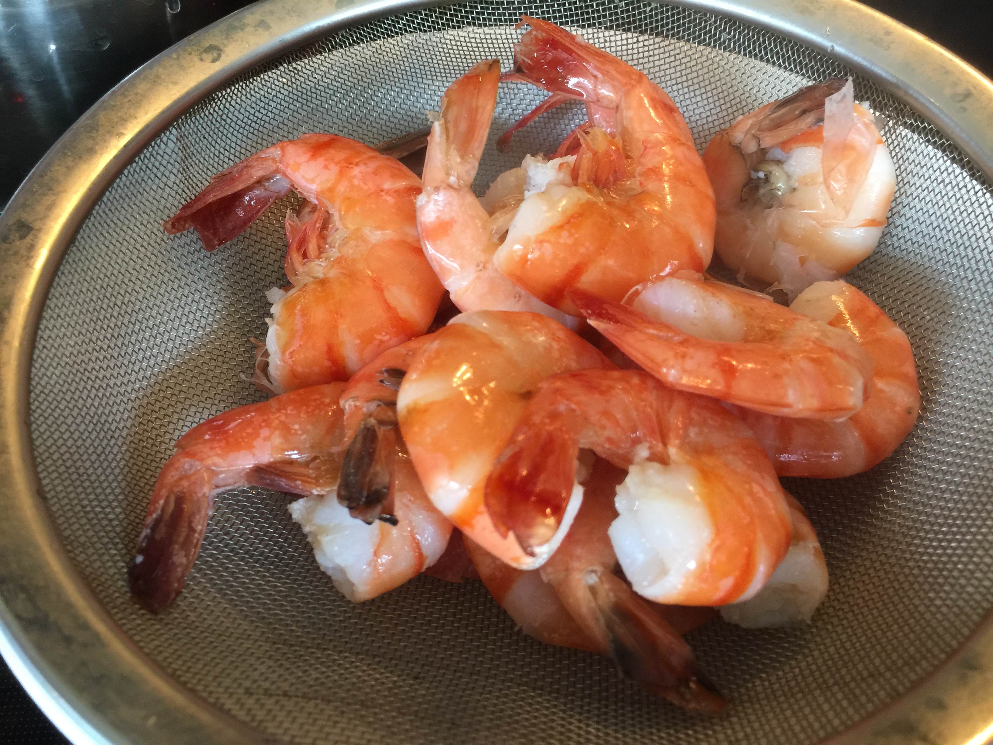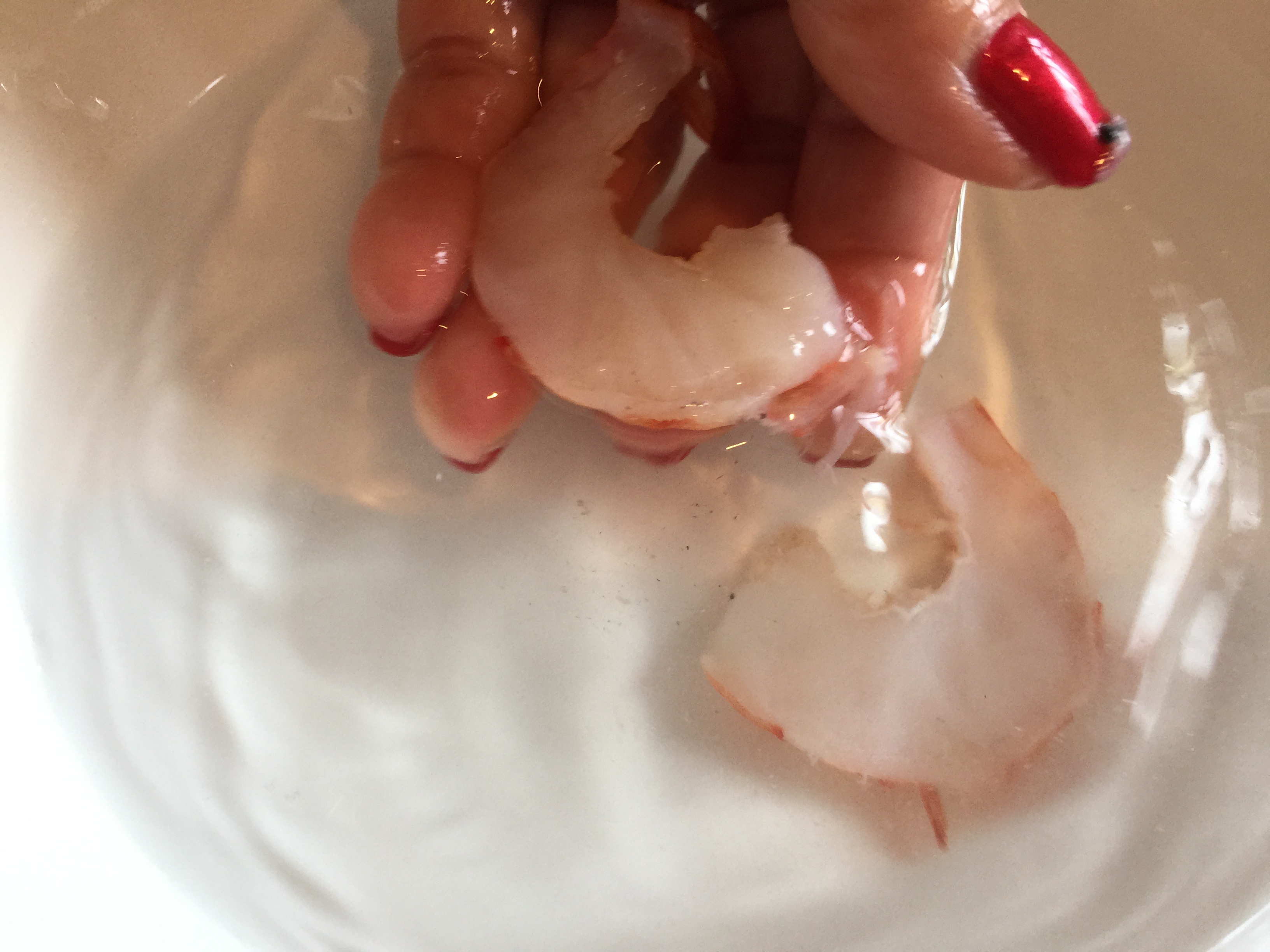 Allow the shrimp to cool for a few minutes. Remove the shells when the shrimp is still warm. Cooking the shrimp in their shell allow them to retain more flavor and also keep the flesh firm.