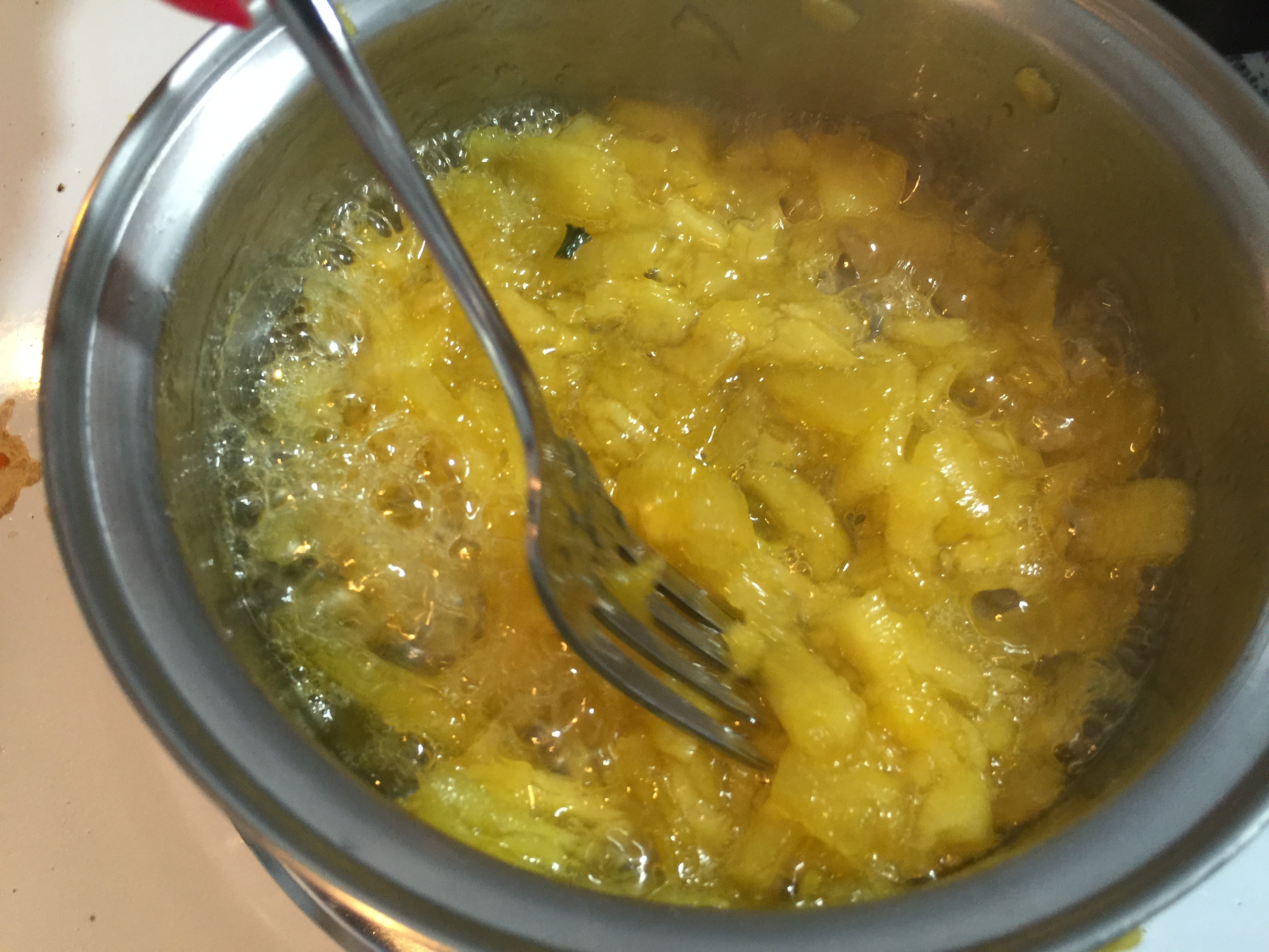 One the pineapple have caramelized (after approximately 7 minutes), add the fish sauce mixture.