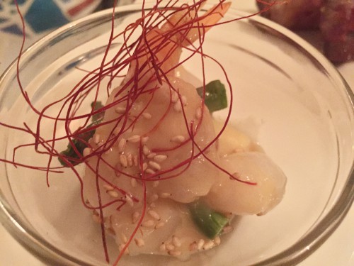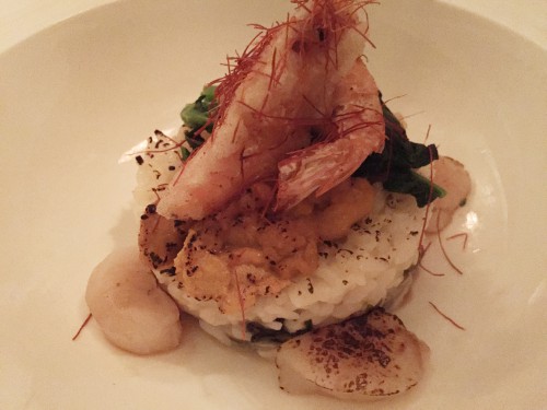 Risotto with sea urchin, scallops, and charred shrimp