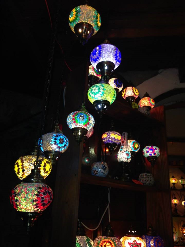 Shop owners can be seen standing by their shops chatting with other shop owners. Most of them speak English enough to hold a conversation with tourists from around the world. The old town is always buzzing with people walking around, streets are decorated with traditional Bosnian rugs, Turkish style glass lamps, snow globes of the bridge, traditional pipe flutes, embroidered tablecloths, copper work, handmade jewellery, colourful paintings, mini Aladdin lamps, and Persian style decorated plates.