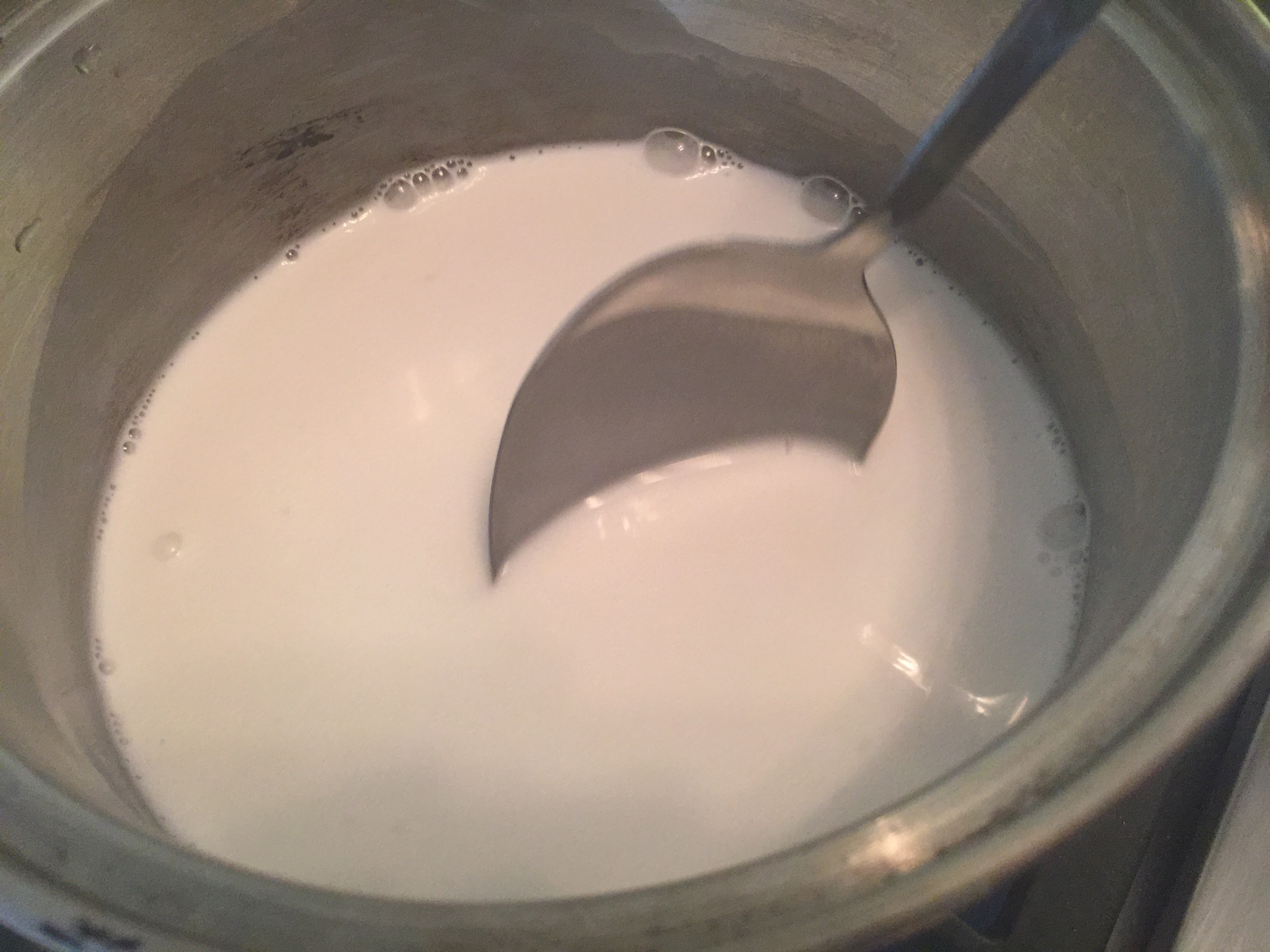 In a small sauce pan on medium heat, simmer 1 ½ cup of coconut milk and ½ cup of water.