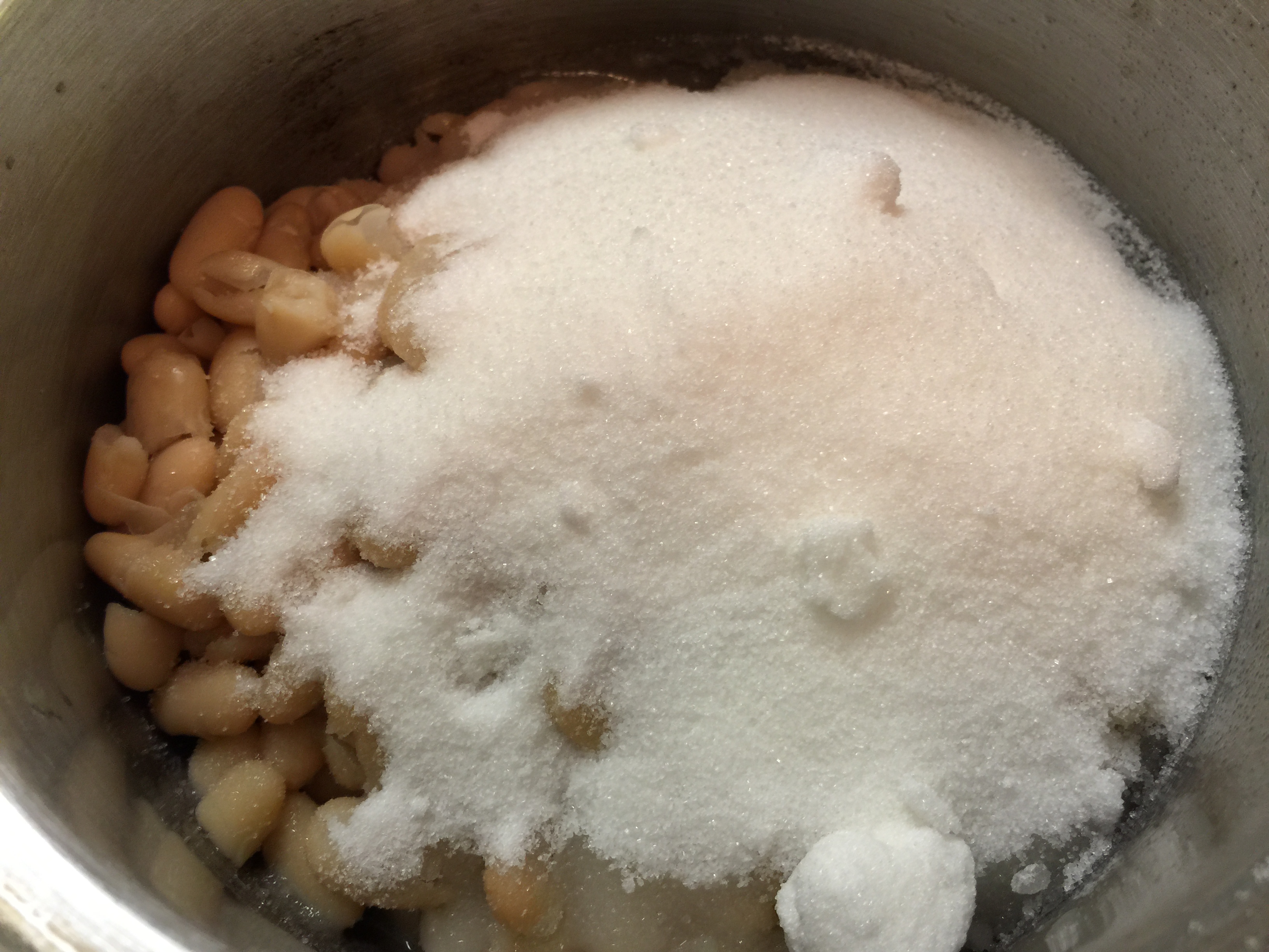 Add the cannellini beans, ½ cup of water, and 1 cup of sugar to a pot and cook on medium heat.