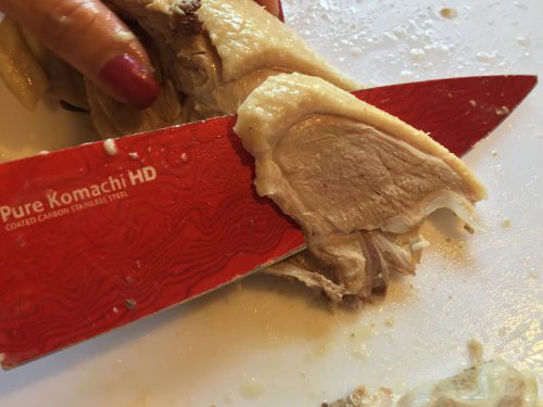 Thinly slice the breast meat