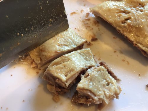 Use the cleaver and chop up the bony part of the duck into 2-3 inch segments