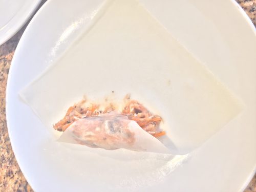press lightly while pulling back on the egg roll