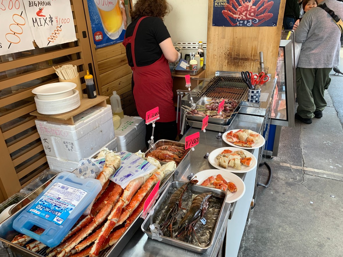 Grilled baby octopus stall next to Maguroya Kurogin