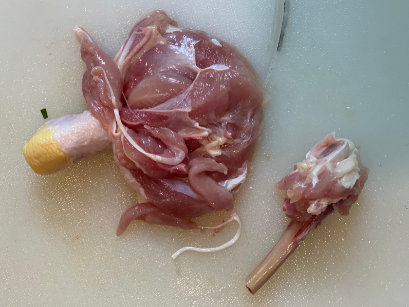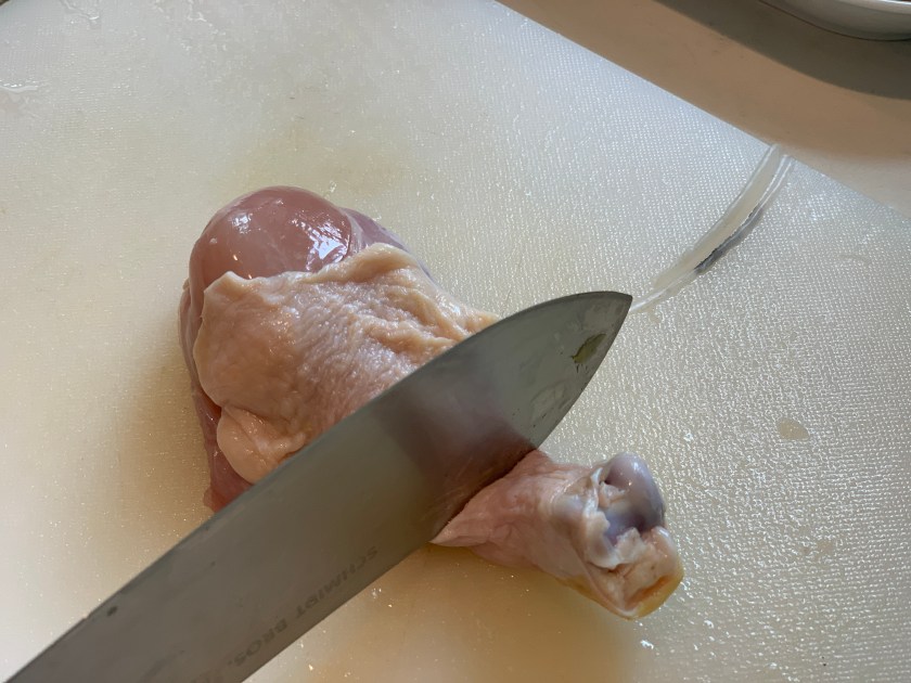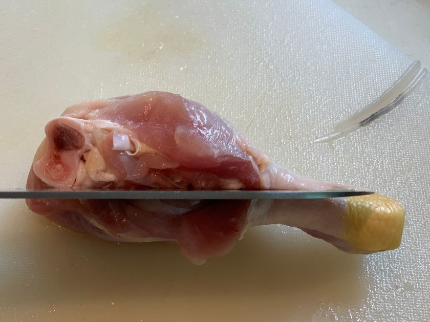 Prepare the drumsticks by removing the main bone, while leaving the end piece intact. You can also skip this step and opt for boneless chicken.