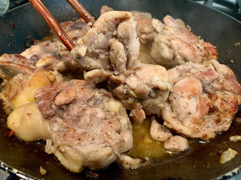 Once both sides are crispy and golden, which only takes a few minutes, cover the pan and turn the heat to medium. This will help steam the chicken to thoroughly cook them for approximately 5 minutes.