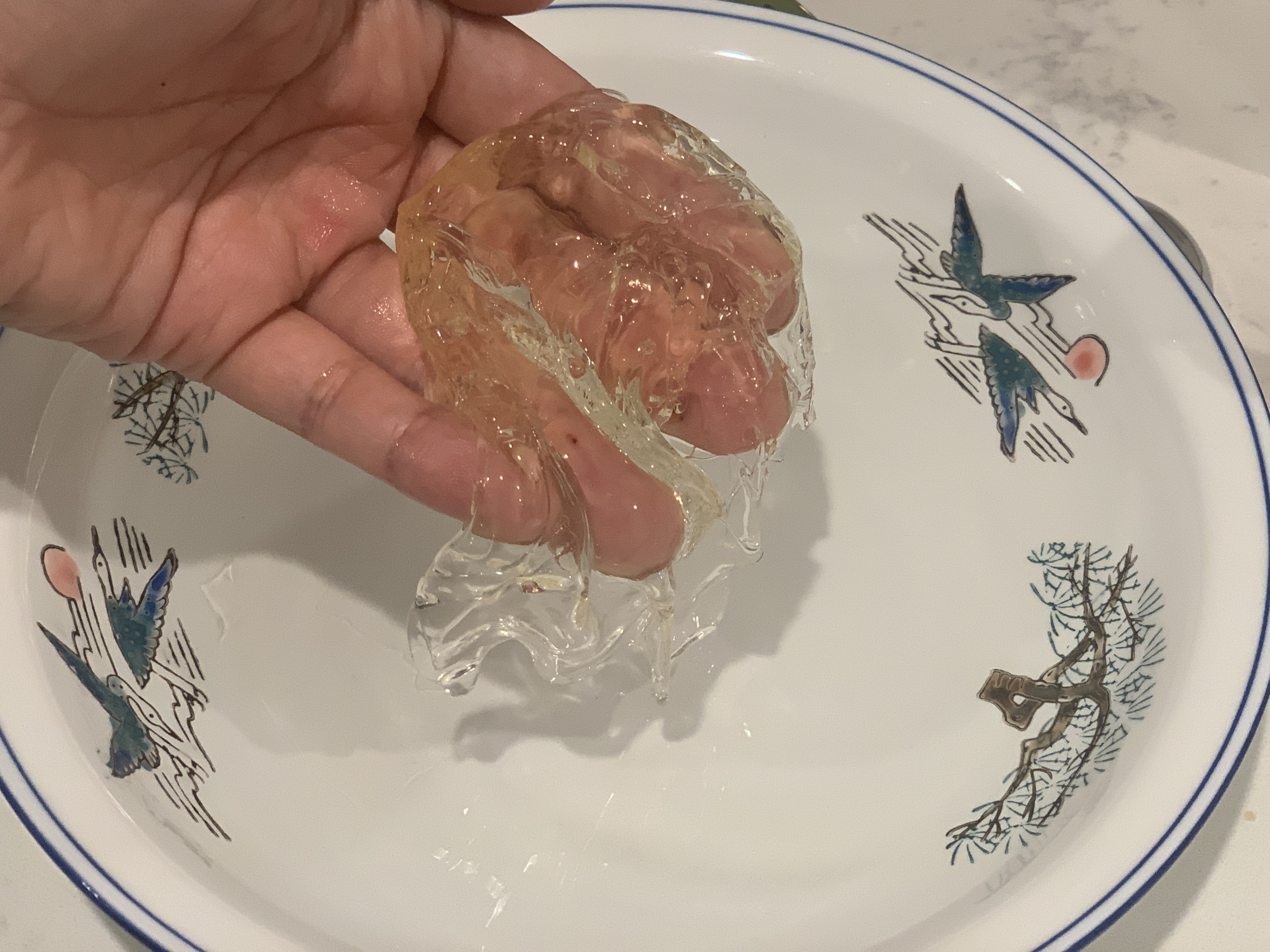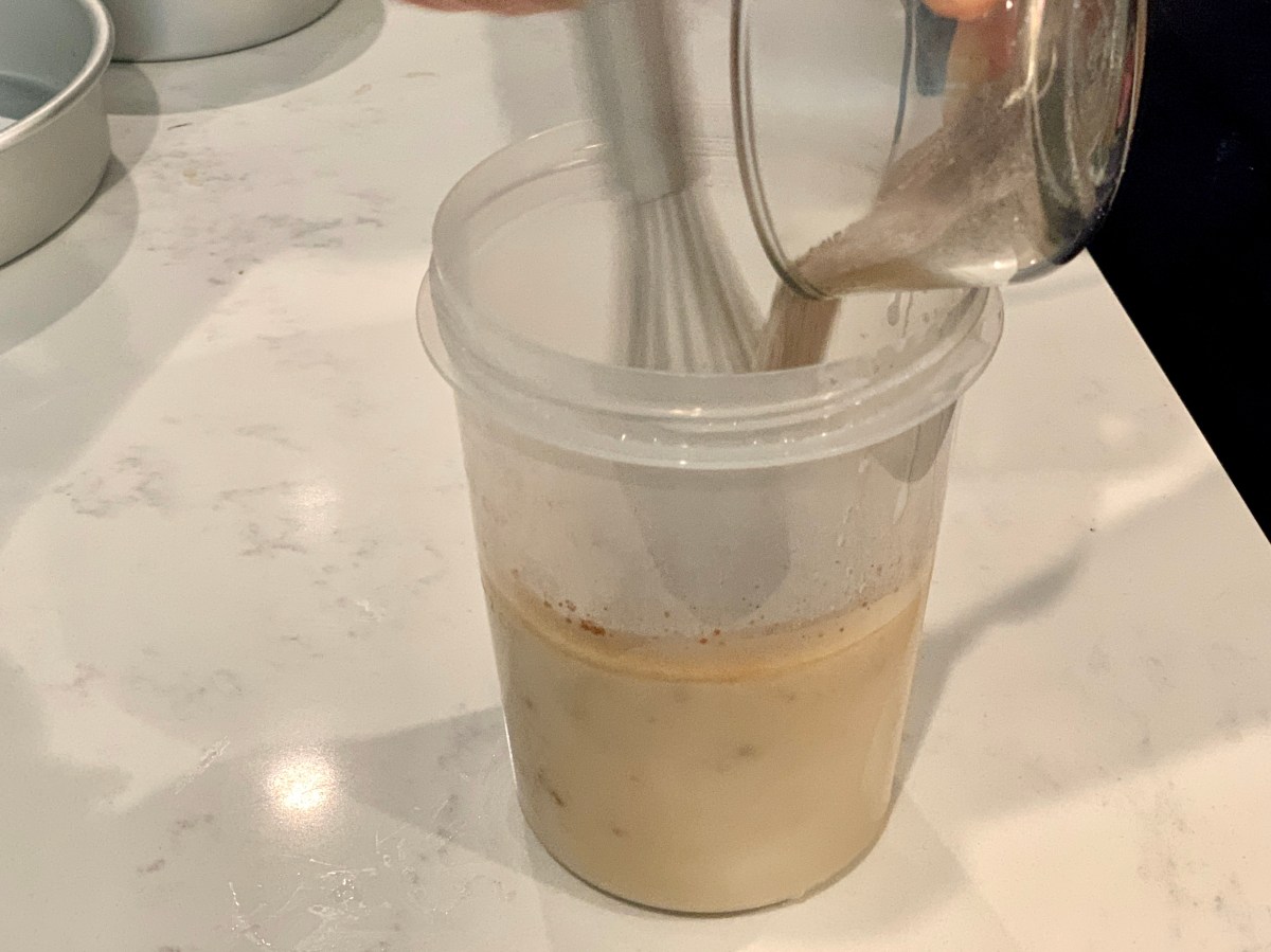 While stirring the flour mixture, slowly add water and mix until there is no dry flour left. (This takes just a few minutes.) Cover with plastic wrap and rest at room temperature (approximately 72F-75F) for up to 24 hours. The longer the dough rests, the more air bubbles will form in the dough, which creates the airy texture without much kneading.