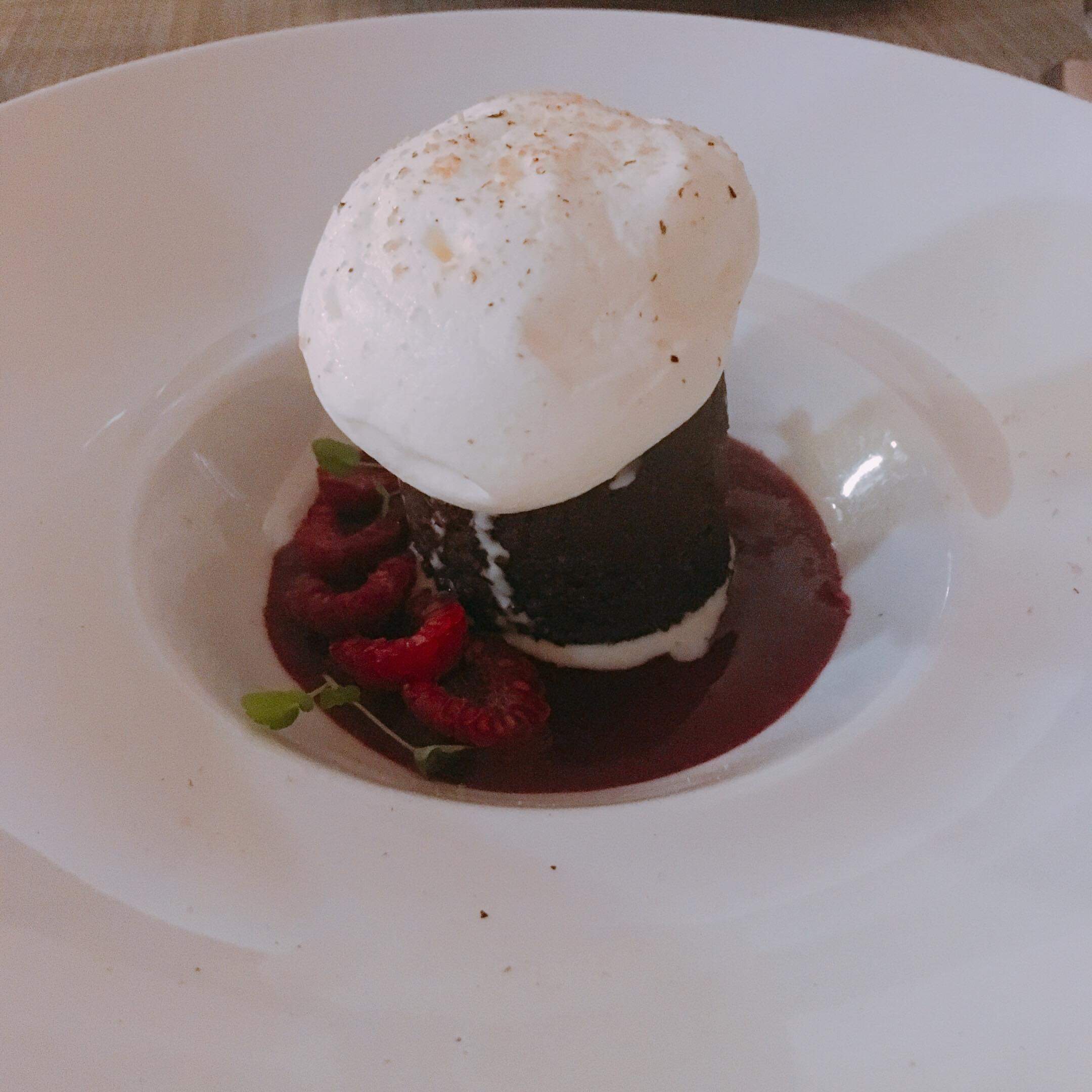 Restaurant M – Chocolate-raspberry cake and tonka bean
